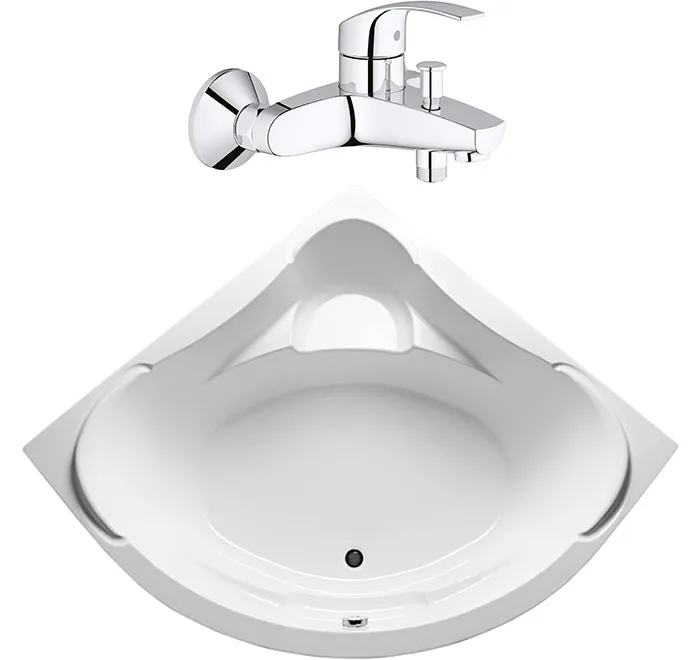 - Акриловая ванна K-Rossei — угловая форма, компактный размер 150х94х65 см и самоочищающееся покрытие.
